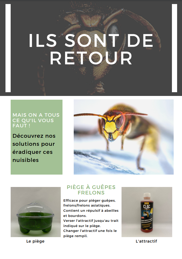 Les guêpes et frelons sont de retour ! Découvrez nos produits qui seront efficaces pour éradiquer ces nuisibles. De plus, on vous montre le matériel qu’on utilise lors de nos interventions. Bien entendu, nos techniciens se protègent avec une combinaison adéquate face à ce genre de nuisible. Bonne lecture.